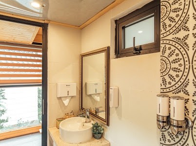 Bungalow được ốp gỗ tự nhiên 2 mặt và cách nhiệt bằng lớp vật liệu đặc biệt giữa tạo không gian thân thiện mát mẻ về mùa hè và ấm áp về mùa đông.