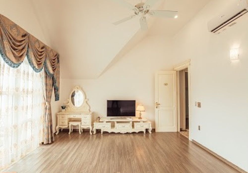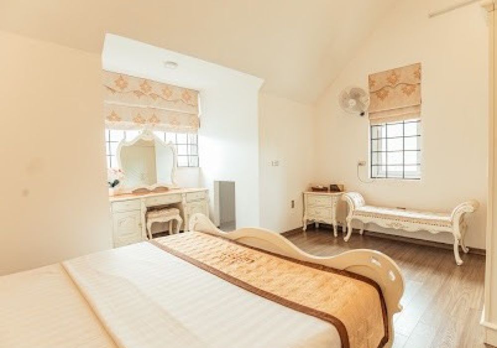 Mặt bằng tầng 2 gồm 3 phòng ngủ phong cách tân cổ điển sang trọng. Trong đó có 1 phòng ngủ sinh hoạt chung được thiết kế đặt 6 đệm đôi ở trung tâm. Căn phòng đa năng này không chỉ là nơi tụ tập vui chơi của trẻ nhỏ mà còn là nơi giao tiếp của người lớn. Khu vực ban công của căn phòng này với phông nền bao quát toàn bộ thung lũng là nơi chụp nhiều bức ảnh đẹp cho các bạn nữ muốn lưu giữ những kỉ niệm trong chuyến đi.