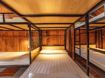 02 phòng đầu hồi dạng phòng tập thể giường tầng rất lý tưởng cho các bạn trẻ. Phòng ngủ chung lớn ở giữa được trang bị rất nhiều nệm và có thể chứa đến 20 khách. Phòng rộng rãi được trang bị tivi màn hình lớn có thể làm nơi sinh hoạt tập thể, hát karaoke cho nhóm.