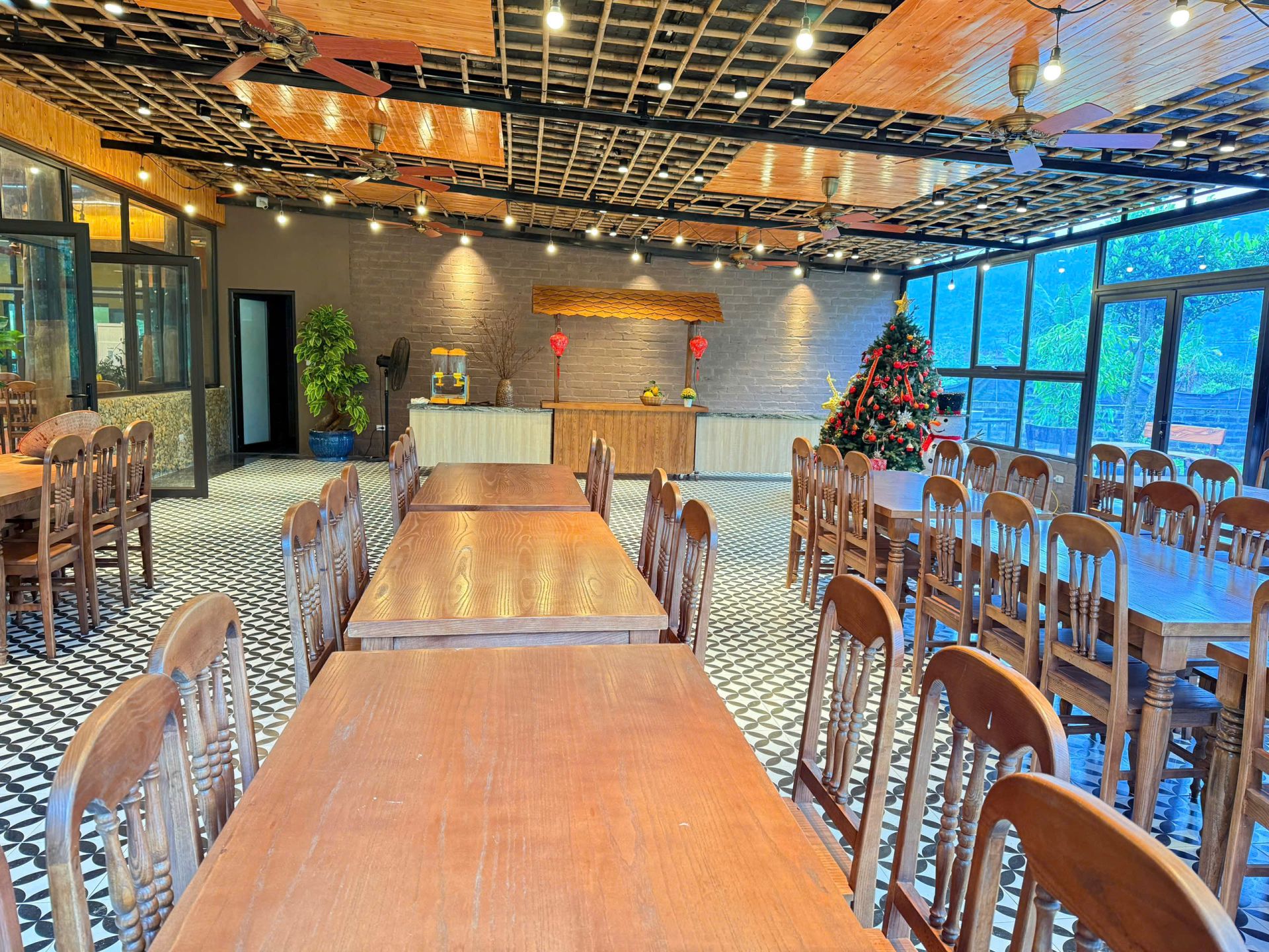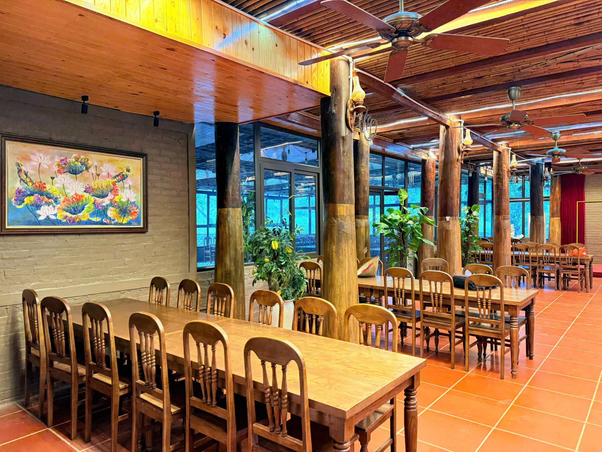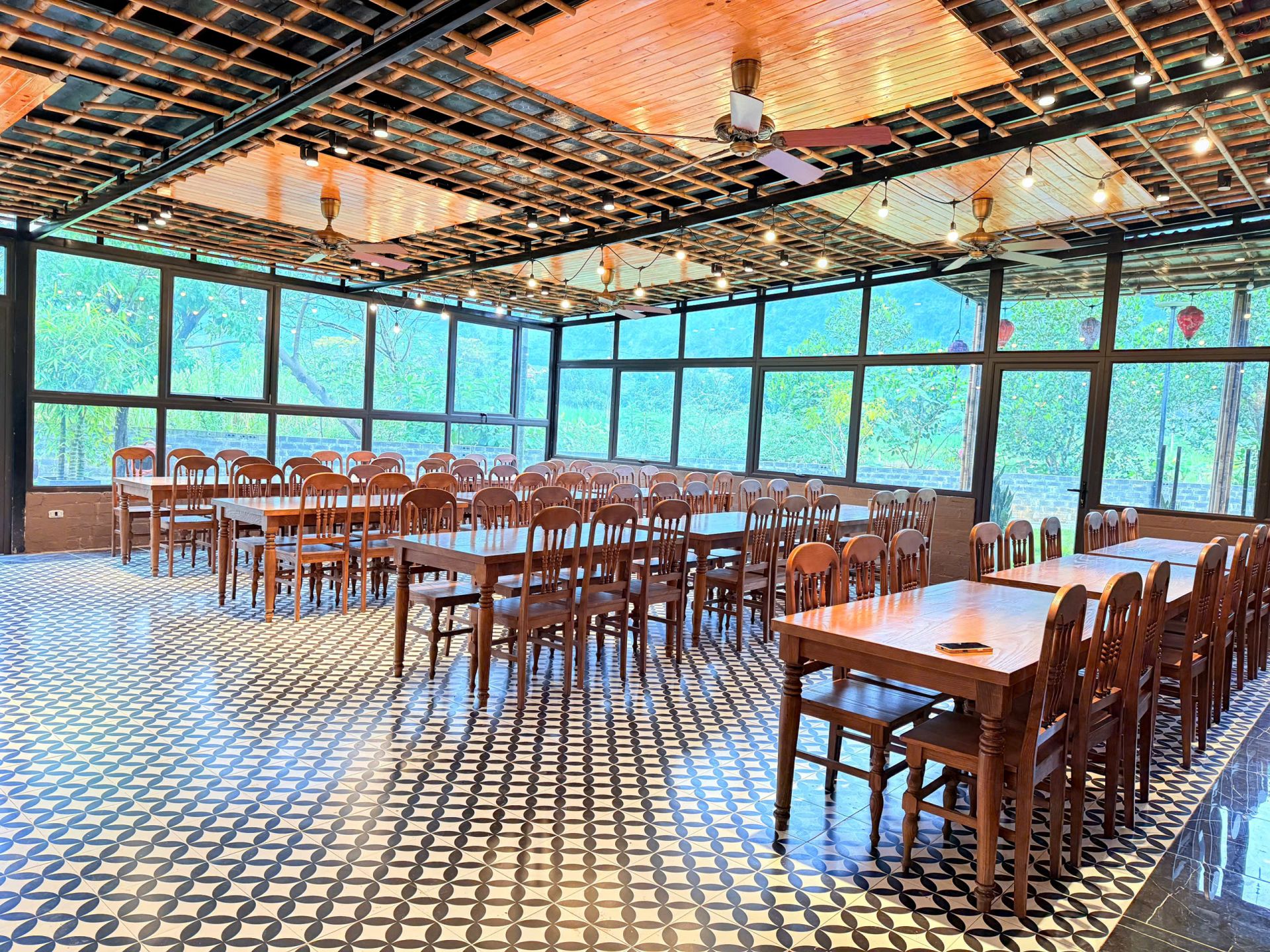 Nhà hàng tại khu nghỉ dưỡng Le Farm mang đến trải nghiệm ẩm thực mộc mạc nhưng tinh tế, hòa quyện trọn vẹn với thiên nhiên trong lành của vùng quê yên bình.